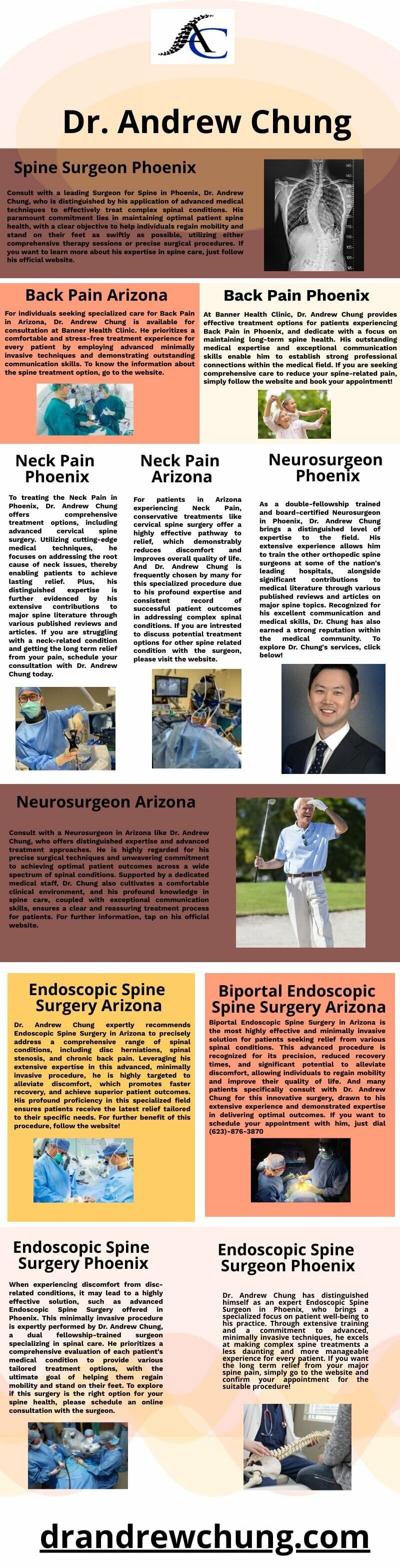 Dr. Andrew Chung has excellent knowledge of Endoscopic Lumbar Fusion in Arizona. And as a dual fellowship spine surgeon, he provides advanced, minimally invasive spinal solutions to patients at Banner Health Clinic, where all the comfortable facilities and a relaxing environment are available. His extensive medical experience and specialized techniques are dedicated to achieving optim... https://tinyjpg.com/backend/opt/output/520egztxnwkw60558bgxf0nvfajbw4am/Infographic%20Of%20Back%20Pain%20Arizona%202%20March%202026.jpg